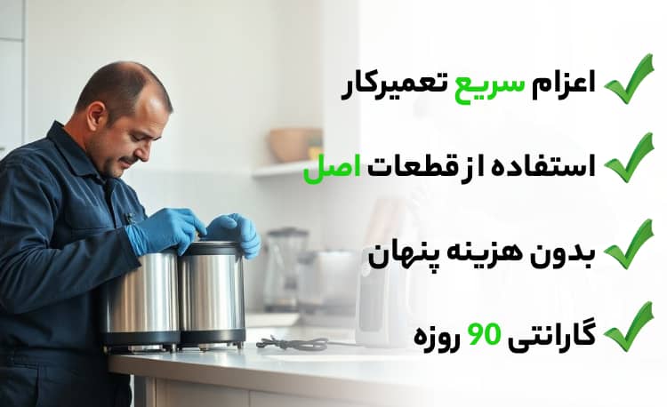 آریابهکار با تمرکز تخصصی روی تعمیر لوازم کوچک آشپزخانه، عیبیابی دقیق و استفاده از قطعات باکیفیت، خدماتی مطمئن و قابلاعتماد را به کاربران عزیز ارائه میدهد. تیم ما با گارانتی کتبی ۹۰ روزه، اعزام سریع و قیمتهای منصفانه، رضایت شما را تضمین میکند.
